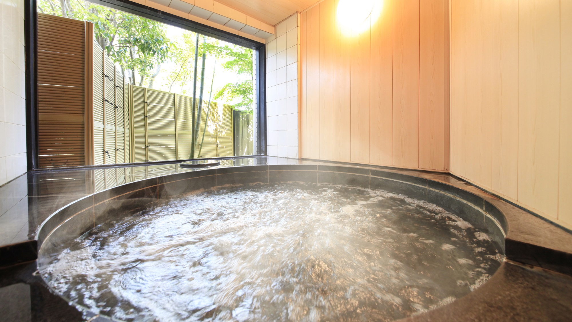 御影石を敷き詰めた大浴場では大涌谷と早雲山からの混合泉をかけ流しにてご提供。